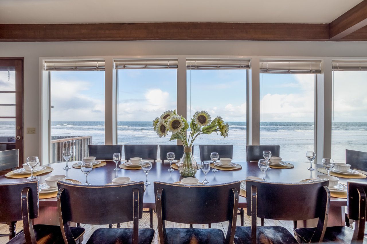 Get ready to wow your guests with this impressive oceanfront home next to the Roads End State Park in northern Lincoln City. This 6,300 square-foot property is three stories of custom construction perfect for a family reunion or lots of friends who want to share a coastal stay.