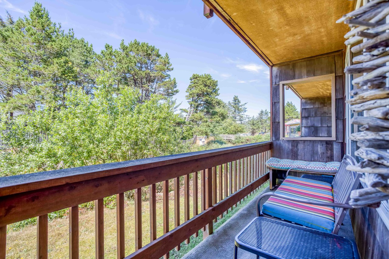 With streamlined furnishings for a clean, open living space, this step-free, ground-level condo is a breath of fresh air for your stay in Neskowin. Beautifully situated for easy access to the beach, village and delicious dining, this home has a private balcony overlooking Hawk Creek. You can sip your morning coffee on the cushioned bench, listen to birdsong and watch the creek bubble its way down to the ocean. Later, stroll over the bridge to a path to the beach, where Proposal Rock, crowned with trees, holds its own against the surf. Play golf on the Neskowin Golf Course, enjoy wood-fired pizza just steps away at Hawk Creek Café, and explore the charming streets of the village. Or jump in the car to arrive in Pacific City or Lincoln City in minutes.