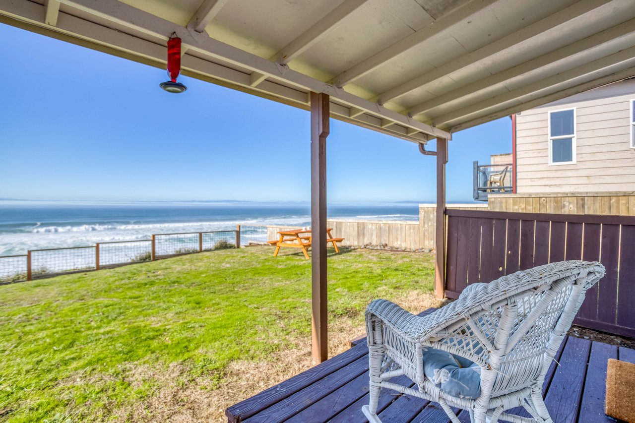 The pretty fenced yard is where you’ll want to spend your time, though! Situated on a cliff above the sea, Cabana J gives you sky-high, panoramic views north to Cascade Head, and beach and surf views to the south. Gulls whirl and call overhead, pelicans skim the waves, and the sky blazes at sunset. A picnic table and barbecue let you grill and dine outside, and it’s an easy walk to a sloping beach access for walking on the sand. The Oceanlake District’s movie theatre, bakery, restaurants and shops are well worth exploring a few short blocks away. The rest of Lincoln City, Depoe Bay and Newport are easy day trips. Try a visit to the charming Cabana J—you’ll love its proximity to activities and its remarkable setting high above the sea!