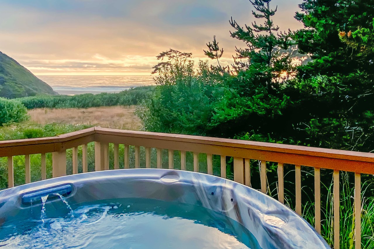 Memories start here: miles of quiet, secluded sandy beach will transport your family or friends to vacation mode. Looking for a family escape? Beach adventure? Peace-filled retreat? Ocean Explorer and Gleneden Beach deliver on all fronts. Ocean soundscapes and all-embracing views greet you throughout, and your access to the beach is just a three-minute stroll out your front door. Enjoy wave watching from the two ocean-facing decks. The top deck sits immediately off the well-appointed kitchen that includes a gas stove and outdoor gas grill. The bottom deck includes a picnic table and a private hot tub with an enviable sunset view.