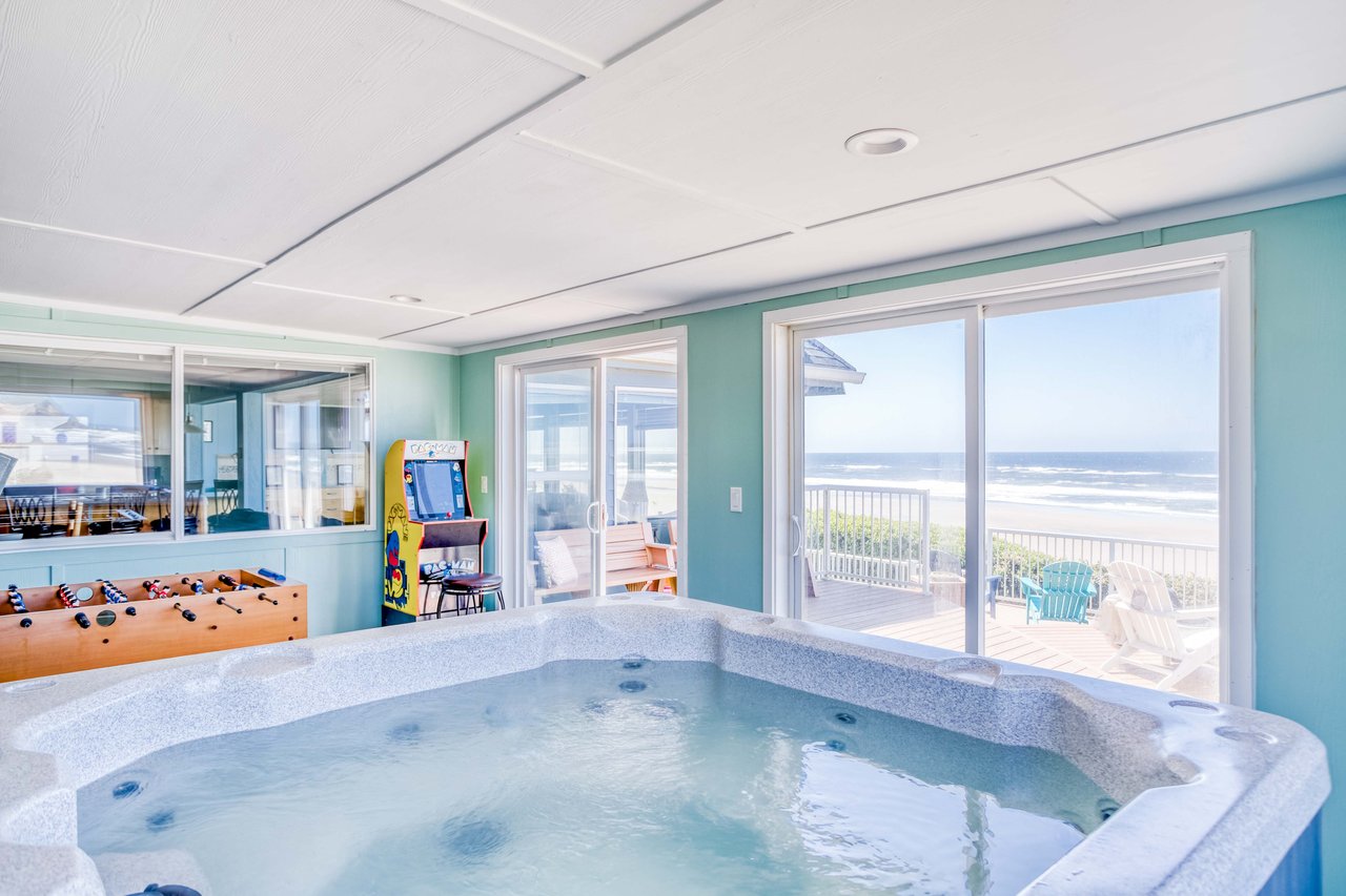 One of the best features of this home is the indoor hot tub and Pac-Man arcade machine located in a bonus room just off the dining area. Walk through the sliding glass door onto the large deck with plenty of seating and a BBQ for a timeless entertaining experience with the beach as the focal point. Sunset Ridge is also dog-friendly, so it's truly perfect for the whole family.