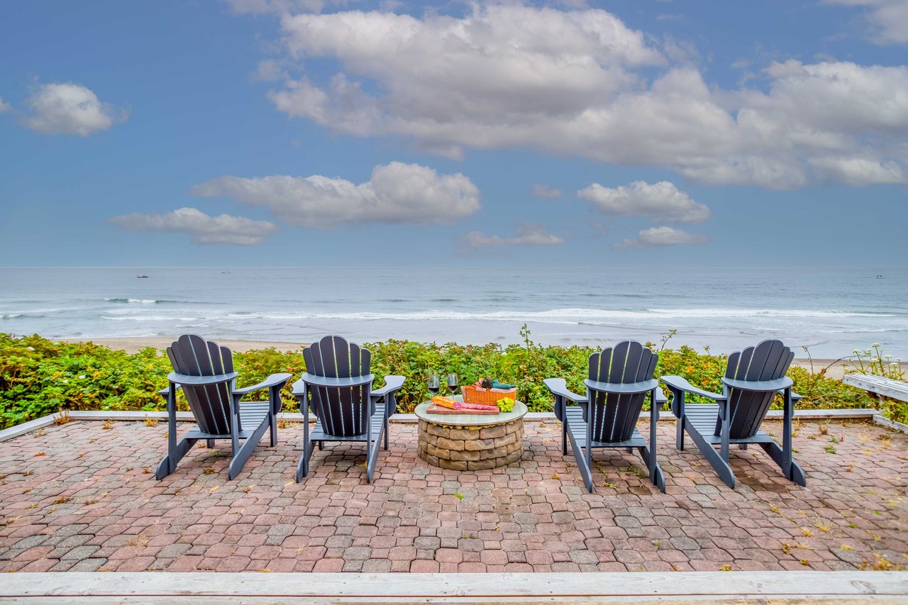 As one of Sea Star’s guests wrote, at Sea Star the beach comes to you! Sit back under the stars on the four Adirondack chairs , soak in the steaming ocean-view hot tub, or grill freshly locally caught seafood and eat dinner while enjoying the sunset from the picnic table on the deck. Inside, you’ll relax in updated, comfortable spaces. The great room has nearly floor-to-ceiling windows, where you can see miles of ocean and listen to the roar of surf. Relax on the cozy sectional or two leather recliners which are situated around a gas fireplace and a smart TV with a DVD player (where you can stream content from your own online subscription services on the high-speed internet, or watch DVDs). For rainy day fun, plenty of books, games, and puzzles can be found in the living room bookcase. Seat six around the ocean-view dining table and serve meals from the fully equipped granite-topped kitchen, with a gas stove and convenient island. It’s easy to invite friends when you each have your own private king or queen primary suite, each with a private bathroom. Since you’re in Bella Beach, you’ll enjoy street parking (including one reserved parking space designated for Sea Star), neighborhood walks or bike rides, a grassy park, children’s playground, French Cafe, and of course access to miles of flat, sandy beach. Beach access is from the street level, past just one other house. Bella Beach is situated conveniently between the communities of Lincoln City and Depoe Bay, with a grocery/market less than a half-mile away.