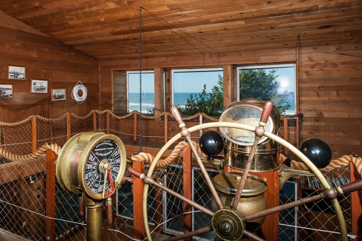 Two of the bathrooms offer walk-in showers while the other is a tub and shower combination. The downstairs' bathroom now offers an ADA accessible toilet and sink. You can now enter the home through an original wooden ships door. The galley (kitchen) is the perfect size for cooking up hardy family meals or a special holiday feast. The dining table is large enough to seat all 10 people in your party. The great room boasts a massive rock style wood burning fireplace and a bank of oceanfront windows. It's the perfect area to relax and unwind in after a long day of traveling. Out back is a very large deck, just as you would find on a ship. The Captain’s Quarters, or primary bedroom, has a California king bed, a sliding glass door with access to the deck, and its' own wood burning fireplace. The Chart Room has a queen bed. Follow the circular stairs to the loft where gorgeous views of the Pacific will leave you breathless and never wanting to leave. Sit up here with a good book, a board game, or just let your mind wander. The loft also offers a futon for guest use. Upstairs, you will find charming window seats and plenty of space for more family fun. You will also find the Crew’s Quarters with authentic naval ship bunks and a twin bed with a twin trundle that sleeps up to four guests. The First Mate’s Quarters has a queen and twin bed. The Crow’s Nest is the tower of this huge vacation rental and is behind a lockable door in the loft, up a narrow flight of rustic stairs, with a queen bed and views you simply can't get enough of. Crow's Nest is a charming, rustic, nautical vacation home just waiting for your family to enjoy! TVs are located in the great room, loft and three of the bedrooms. This vacation home provides Wi-Fi and a propane BBQ. Come down to Newport today and let the pirate and sea lover in you free at beautiful Crow's Nest today with Oregon Beach Vacations!