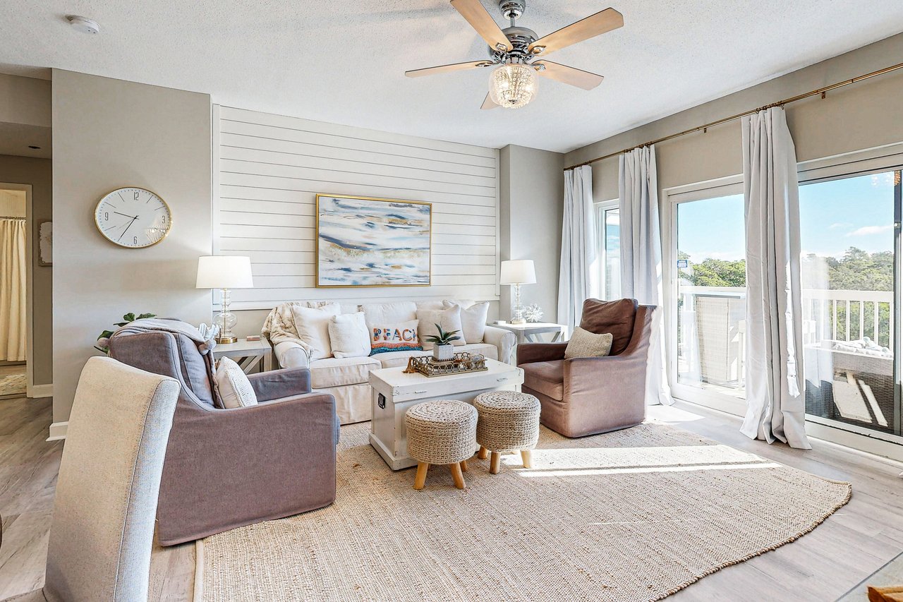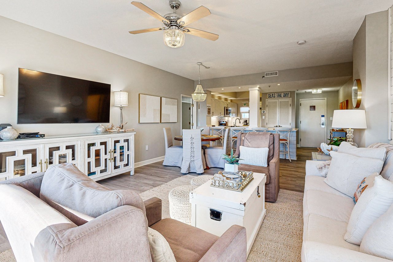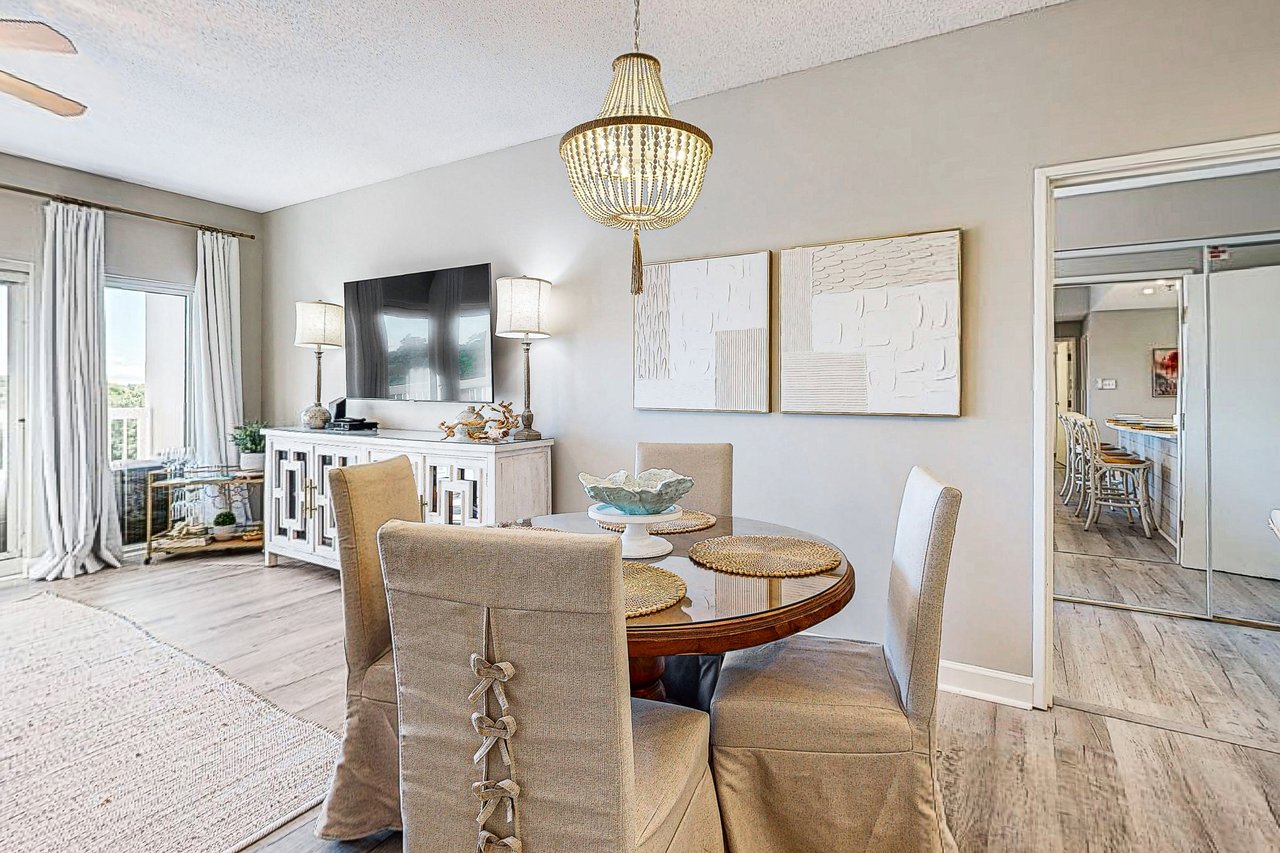 Welcome to Sea La Vie! Located on the fourth floor of the Summit at Tops'l Beach and Racquet Resort, this single-level, three-bedroom condo is comprised of two side-by-side vacation rentals, which can be rented separately as either a one or two-bedroom retreat. The two-bedroom condo includes a full and well-equipped kitchen, while the one-bedroom main suite includes a microwave and a mini-fridge to make it easy to prepare cost-saving, homecooked meals or to reheat last night's leftovers. Do your laundry using the newly purchased washer/dryer combo located in the kitchen area of the two-bedroom condo. The large living area is great for gathering and watching TV after days of relaxing on the beach, golfing at one of the many nearby golf courses, or shopping with family and friends. Both condos offer spacious, private and fully furnished balconies - the perfect spot for evening cocktails and conversation in the open air all within sight of the Gulf. Guests have access to a host of on-site amenities ranging from pools and hot tubs to restaurants, fitness center and sports courts.