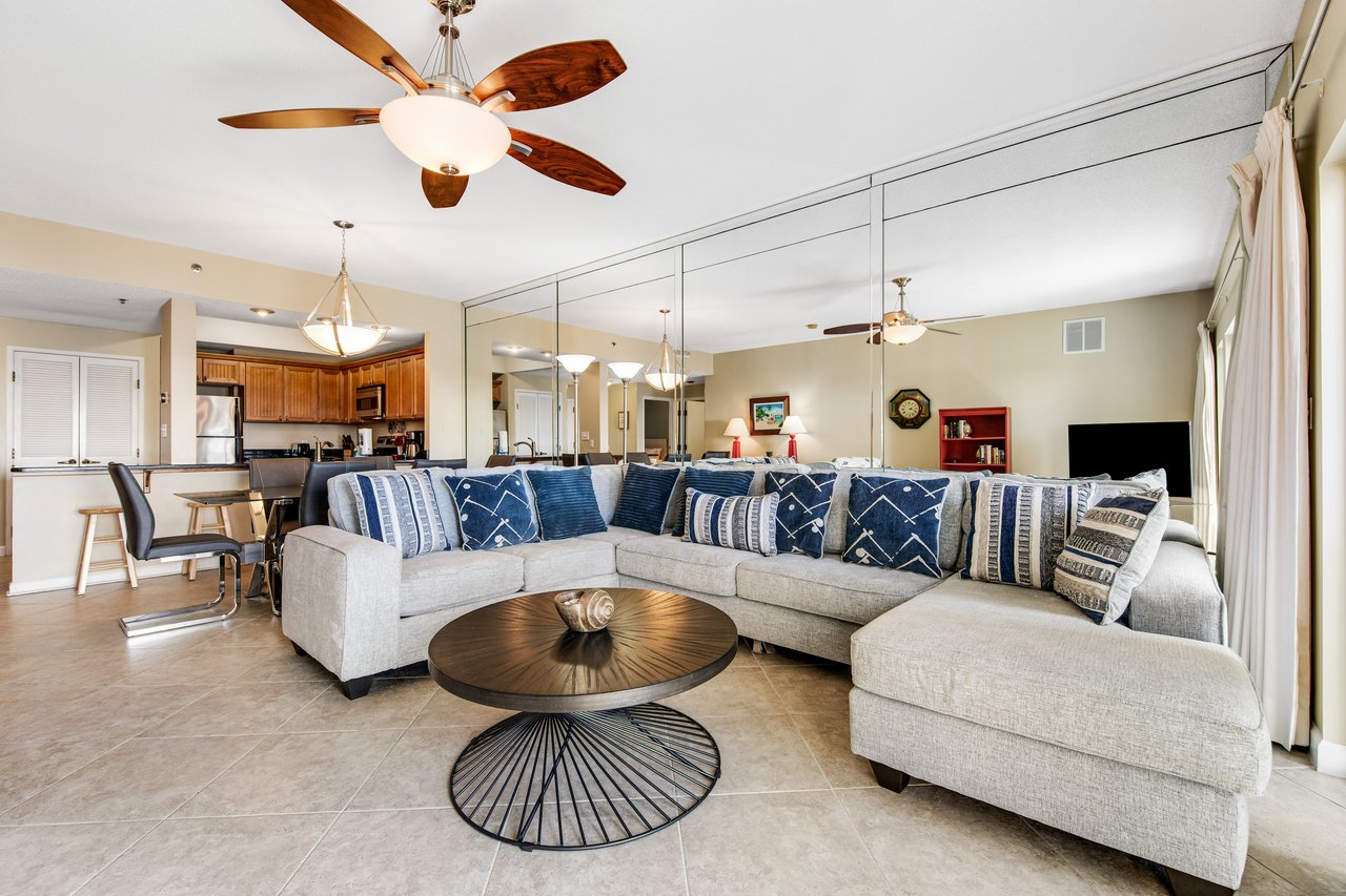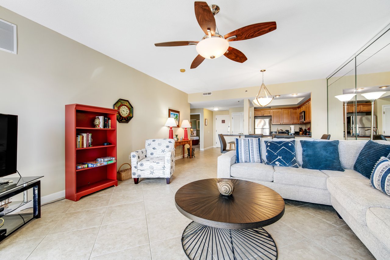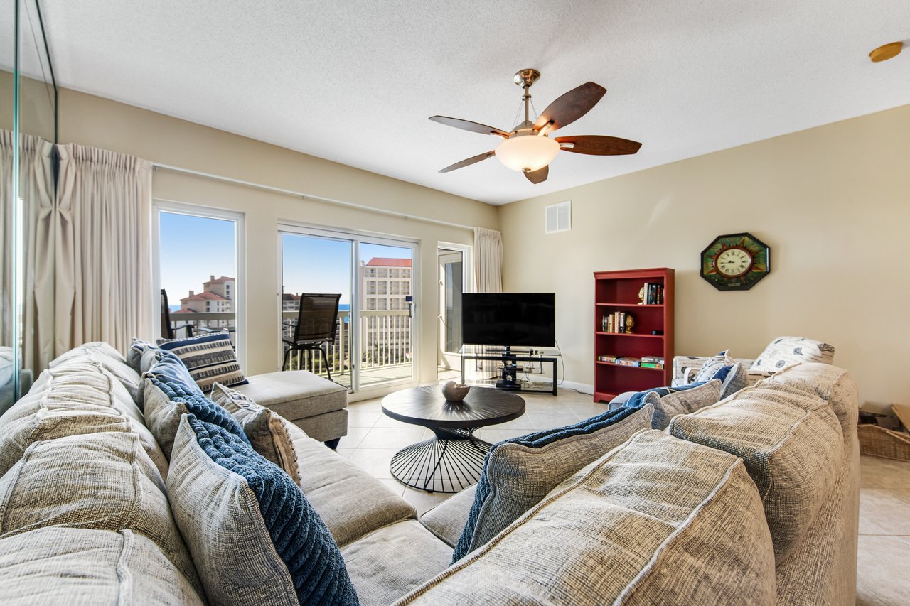This blissfully quiet corner condo at Tops'l Summit offers views of the Gulf of Mexico, the Destin skyline, and the lovely, verdant shores of Miramar Beach! Wake up each morning to prepare breakfast using stainless steel appliances and granite countertops, step outside onto the balcony with your coffee in hand, and spend your days walking to the beach, swimming in the resort's pools, and unwinding in the hot tub, sauna, and steam room.