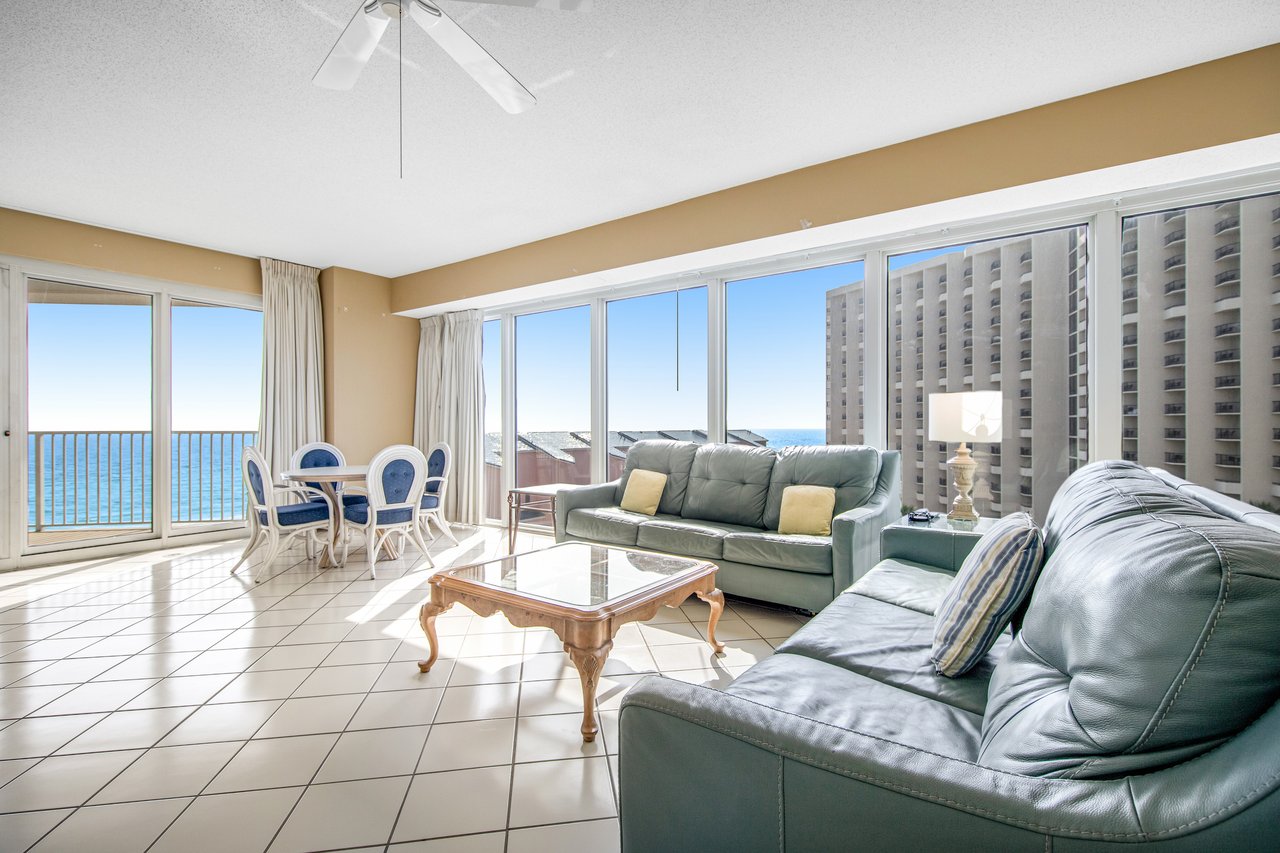 This spacious and sparkling, fifth floor condo, part of the the Tides at Tops'l, offers outstanding views of the Gulf of Mexico, the adjacent sugar white-sand beaches, and the Western Destin coastline. Brew up your morning coffee or prepare full-course dinners in your bright, well-equipped kitchen complete with stainless steel appliances and a breakfast bar. The sunny and open great room includes two tables with seating for up to 10, a cozy living area, a wet bar, and easy access out to your 475 square foot, furnished balcony. On-site, enjoy a wide variety of deluxe, resort amenities including multiple pools, a hot tub, fitness room, tennis courts, and even a tropical bar. You’ll also have exclusive access to the coveted Tides Pickleball courts.