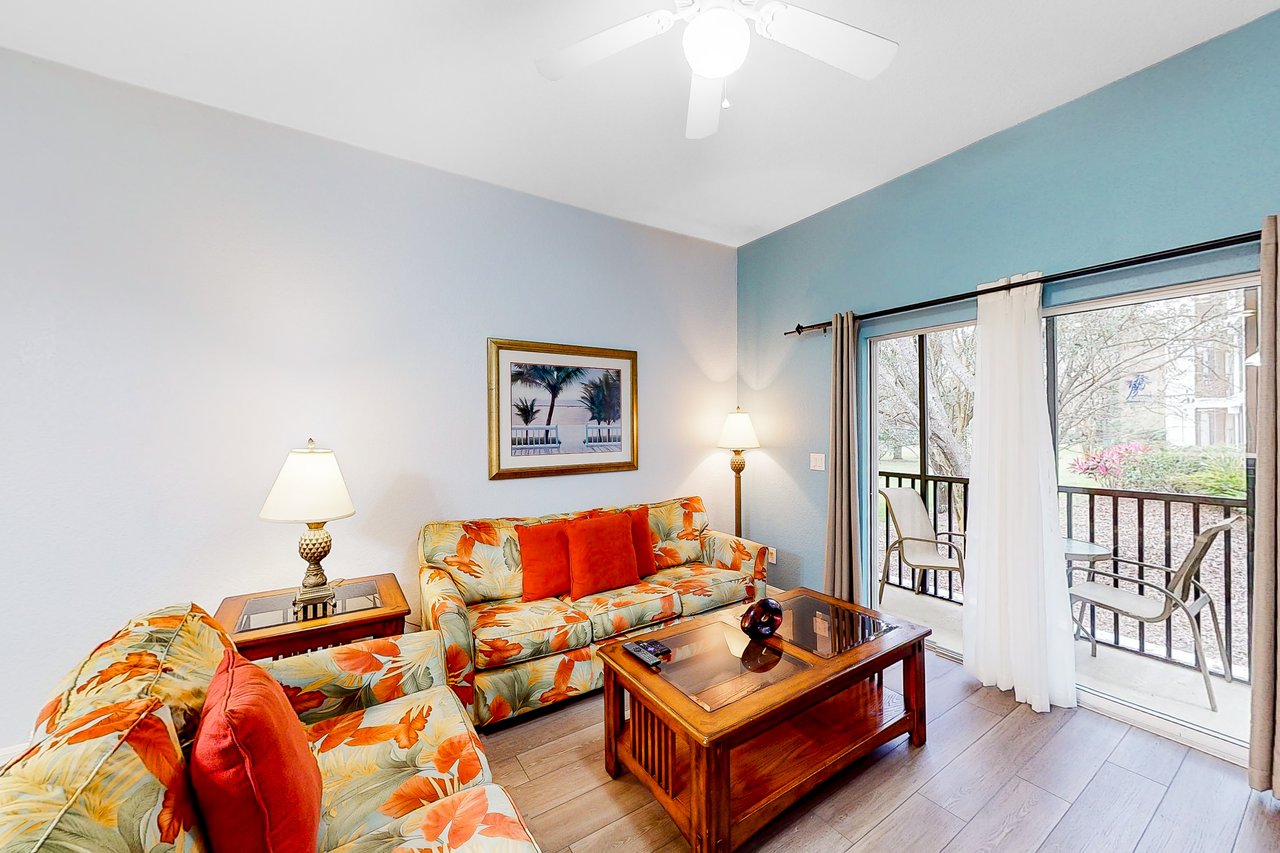Boasting more than 1,200 square feet of space, the 3-bedroom Abacos villas at Bahama Bay Resort & Spa are ideal for family vacations or group getaways. Comfortable queen-sized beds are standard in the master bedroom and first guest bedroom, while the second guest bedroom features two twin beds. Additional sleeping space is available via a sleeper-sofa that opens up into a queen-sized bed in the living room. The Abacos villas feature two full bathrooms. Enjoy meals in the fully-equipped kitchen which includes all major appliances such as a refrigerator, oven, stove and microwave, and also includes cookware, utensils, and glassware. With plenty of room to spread out, guests will love the spacious living room-dining room area and can take in the scenery from a screened balcony with tables and chairs. An in-unit laundry room means guests can wash clothes while watching cable TV in the living room or master bedroom, or while keeping an eye on the little ones in the crib and highchair included in each unit. What's nearby: The Bahama Bay Resort & Spa boasts amenities like shared pools, hot tubs, fitness center, and a sauna. Located on the shores of Old Lake Davenport, you can enjoy the sand beach, view wildlife from the pier, or relax in a hammock. The resort is also conveniently located near Polo Park East Golf Course. Located only 10 miles from Walt Disney World, there are plenty of local dining and shopping options nearby. Disney Springs offers over 100 shops and 60 restaurants along with daily and nightly entertainment. Gatorland has a free-flight aviary, petting zoo, animal shows, zip line, and a new Stompin' Gator Off-Road Adventure. For additional entertainment, Sea World is just 16 miles away, Universal Studios is 22 miles and for the younger guests, Legoland Florida is 23 miles away from the resort. The Tradewinds Restaurant and Bar, located within the resort, is located poolside on the shore of Lake Davenport. With both indoor and outdoor seating, as well as a bar with lake views, guests can enjoy ice cold drinks, signature burgers and fries, and more! The Market Place, located in the main Clubhouse, offers a wide selection of items from sundries and necessities to souvenirs, apparel, gifts, drinks, snacks, ice cream, and accessories. Things to know: Free WiFi Full Kitchen Please note: All shared amenities are open and operating under limited capacity and new operating hours. Specific information will be provided after booking. Outdoor parking is available at no charge. Motorcycles are permitted but may not remain on a trailer. Trailers of any kind, RVs, and jet skis are not allowed. Commercial or logo-marked vehicles are also prohibited unless they are actively providing service or making a delivery.