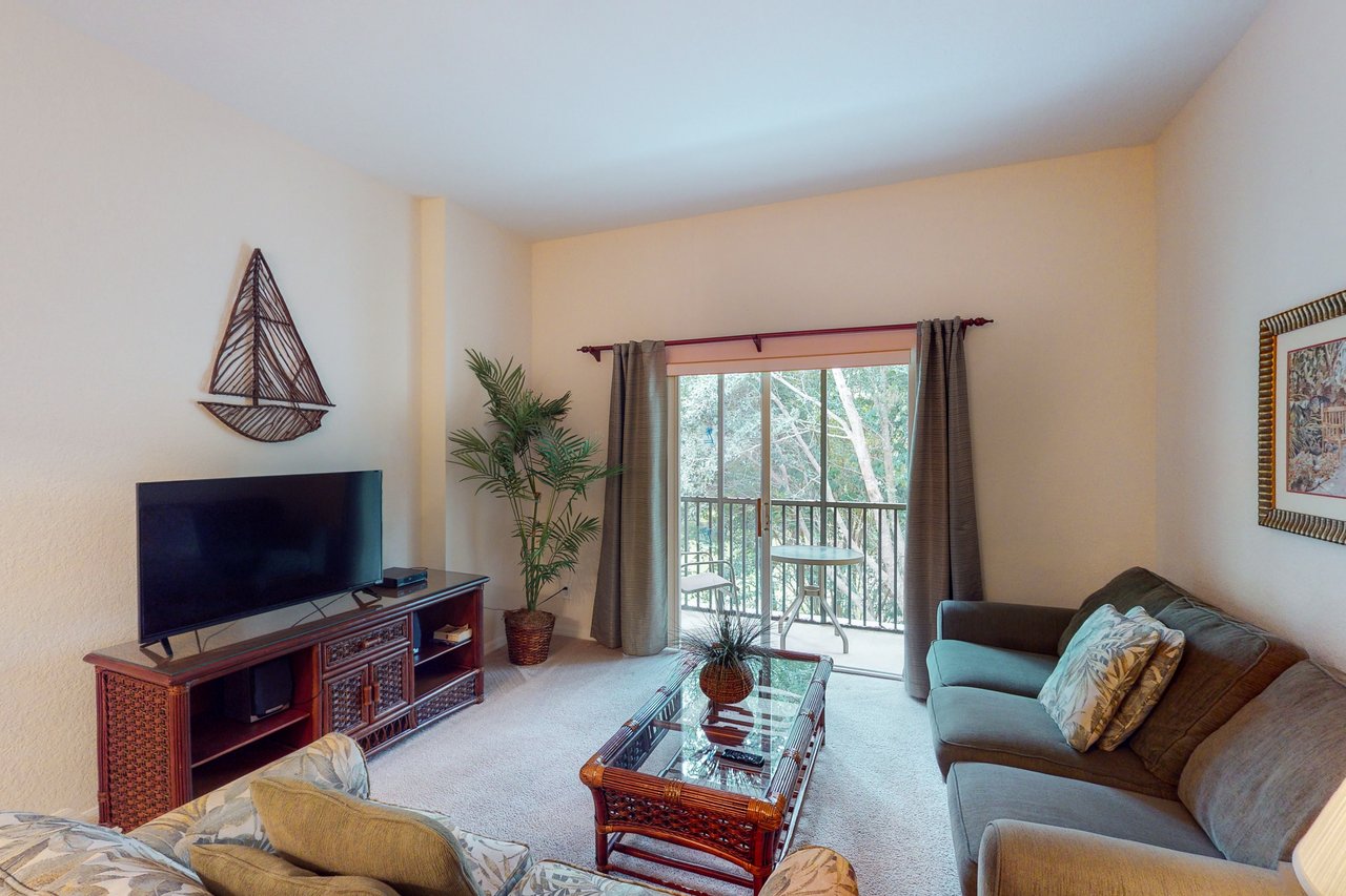 Boasting more than 1,200 square feet of space, the 3-bedroom Abacos villas at Bahama Bay Resort & Spa are ideal for family vacations or group getaways. Comfortable queen-sized beds are standard in the master bedroom and first guest bedroom, while the second guest bedroom features two twin beds. Additional sleeping space is available via a sleeper-sofa that opens up into a queen-sized bed in the living room. The Abacos villas feature two full bathrooms. Enjoy meals in the fully-equipped kitchen which includes all major appliances such as a refrigerator, oven, stove and microwave, and also includes cookware, utensils, and glassware. With plenty of room to spread out, guests will love the spacious living room-dining room area and can take in the scenery from a screened balcony with tables and chairs. An in-unit laundry room means guests can wash clothes while watching cable TV in the living room or master bedroom, or while keeping an eye on the little ones in the crib and highchair included in each unit. What's nearby: The Bahama Bay Resort & Spa boasts amenities like shared pools, hot tubs, fitness center, and a sauna. Located on the shores of Old Lake Davenport, you can enjoy the sand beach, view wildlife from the pier, or relax in a hammock. The resort is also conveniently located near Polo Park East Golf Course. Located only 10 miles from Walt Disney World, there are plenty of local dining and shopping options nearby. Disney Springs offers over 100 shops and 60 restaurants along with daily and nightly entertainment. Gatorland has a free-flight aviary, petting zoo, animal shows, zip line, and a new Stompin' Gator Off-Road Adventure. For additional entertainment, Sea World is just 16 miles away, Universal Studios is 22 miles and for the younger guests, Legoland Florida is 23 miles away from the resort. The Tradewinds Restaurant and Bar, located within the resort, is located poolside on the shore of Lake Davenport. With both indoor and outdoor seating, as well as a bar with lake views, guests can enjoy ice cold drinks, signature burgers and fries, and more! The Market Place, located in the main Clubhouse, offers a wide selection of items from sundries and necessities to souvenirs, apparel, gifts, drinks, snacks, ice cream, and accessories. Things to know: Free WiFi Full Kitchen Please note: All shared amenities are open and operating under limited capacity and new operating hours. Specific information will be provided after booking. Outdoor parking is available at no charge. Motorcycles are permitted but may not remain on a trailer. Trailers of any kind, RVs, and jet skis are not allowed. Commercial or logo-marked vehicles are also prohibited unless they are actively providing service or making a delivery.