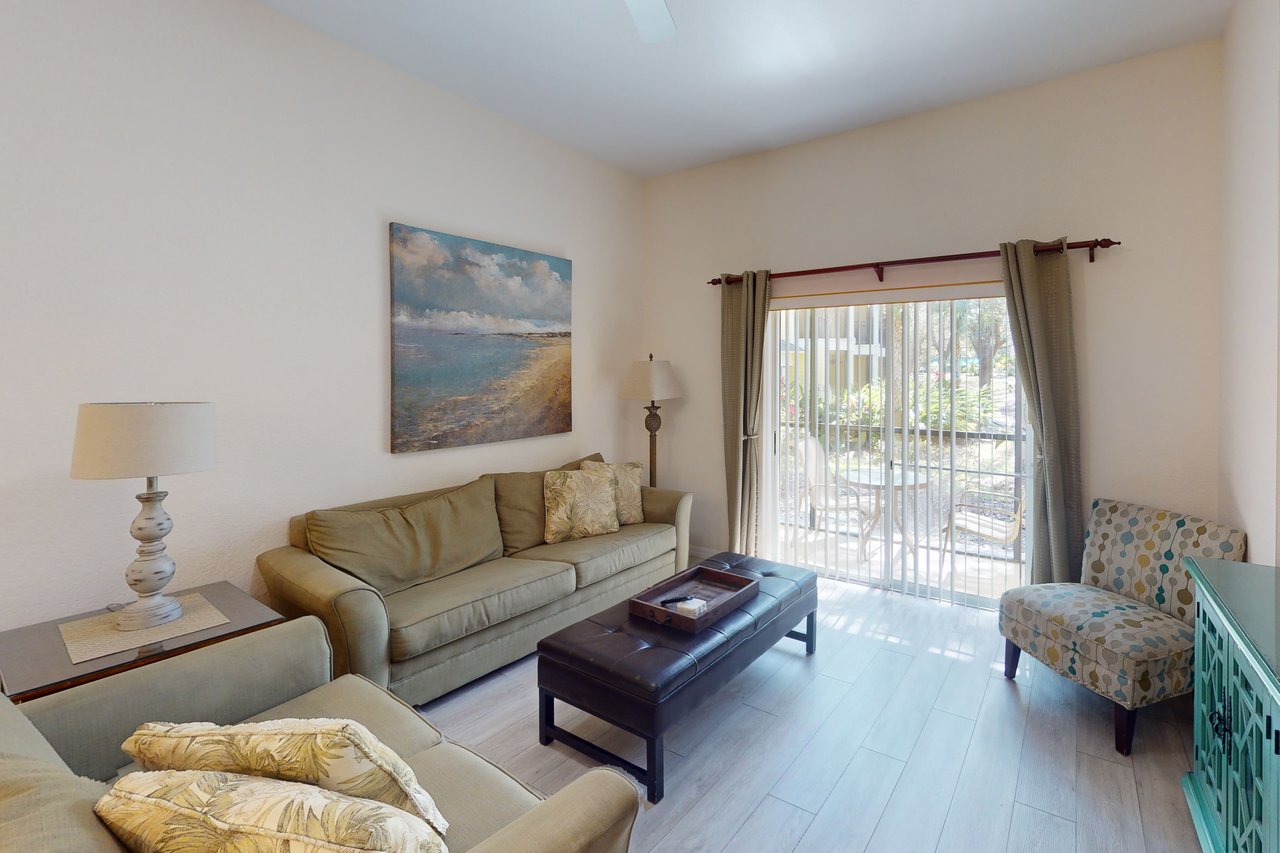 Boasting more than 1,200 square feet of space, the 3-bedroom Abacos villas at Bahama Bay Resort & Spa are ideal for family vacations or group getaways. Comfortable queen-sized beds are standard in the master bedroom and first guest bedroom, while the second guest bedroom features two twin beds. Additional sleeping space is available via a sleeper-sofa that opens up into a queen-sized bed in the living room. The Abacos villas feature two full bathrooms. Enjoy meals in the fully-equipped kitchen which includes all major appliances such as a refrigerator, oven, stove and microwave, and also includes cookware, utensils, and glassware. With plenty of room to spread out, guests will love the spacious living room-dining room area and can take in the scenery from a screened balcony with tables and chairs. An in-unit laundry room means guests can wash clothes while watching cable TV in the living room or master bedroom, or while keeping an eye on the little ones in the crib and highchair included in each unit. What's nearby: The Bahama Bay Resort & Spa boasts amenities like shared pools, hot tubs, fitness center, and a sauna. Located on the shores of Old Lake Davenport, you can enjoy the sand beach, view wildlife from the pier, or relax in a hammock. The resort is also conveniently located near Polo Park East Golf Course. Located only 10 miles from Walt Disney World, there are plenty of local dining and shopping options nearby. Disney Springs offers over 100 shops and 60 restaurants along with daily and nightly entertainment. Gatorland has a free-flight aviary, petting zoo, animal shows, zip line, and a new Stompin' Gator Off-Road Adventure. For additional entertainment, Sea World is just 16 miles away, Universal Studios is 22 miles and for the younger guests, Legoland Florida is 23 miles away from the resort. The Tradewinds Restaurant and Bar, located within the resort, is located poolside on the shore of Lake Davenport. With both indoor and outdoor seating, as well as a bar with lake views, guests can enjoy ice cold drinks, signature burgers and fries, and more! The Market Place, located in the main Clubhouse, offers a wide selection of items from sundries and necessities to souvenirs, apparel, gifts, drinks, snacks, ice cream, and accessories. Things to know: Free WiFi Full Kitchen Please note: All shared amenities are open and operating under limited capacity and new operating hours. Specific information will be provided after booking. Outdoor parking is available at no charge. Motorcycles are permitted but may not remain on a trailer. Trailers of any kind, RVs, and jet skis are not allowed. Commercial or logo-marked vehicles are also prohibited unless they are actively providing service or making a delivery.