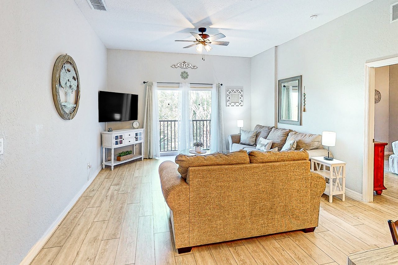 The most spacious of all our properties, the Gran Bahama villas offer more than 1,700 square feet of living area, perfect for larger families looking for accommodation near the Magic Kingdom. This villa boasts three bedrooms and additional sleeping space in the living room. This home also has a full kitchen, private washer and dryer, and kid-friendly items like a high chair. So whether you start your day off with a coffee on the screened balcony of your villa, a swim in one of Bahama Bay's four pools, or a walk around the beautifully maintained grounds, Bahama Bay is an ideal location for your next Orlando vacation.