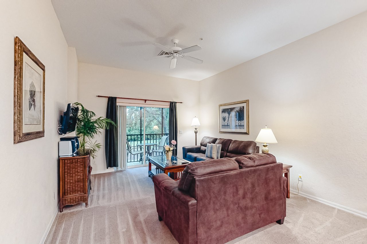Boasting more than 1,200 square feet of space, the 3-bedroom Abacos villas at Bahama Bay Resort & Spa are ideal for family vacations or group getaways. Comfortable queen-sized beds are standard in the master bedroom and first guest bedroom, while the second guest bedroom features two twin beds. Additional sleeping space is available via a sleeper-sofa that opens up into a queen-sized bed in the living room. The Abacos villas feature two full bathrooms. Enjoy meals in the fully-equipped kitchen which includes all major appliances such as a refrigerator, oven, stove and microwave, and also includes cookware, utensils, and glassware. With plenty of room to spread out, guests will love the spacious living room-dining room area and can take in the scenery from a screened balcony with tables and chairs. An in-unit laundry room means guests can wash clothes while watching cable TV in the living room or master bedroom, or while keeping an eye on the little ones in the crib and highchair included in each unit. What's nearby: The Bahama Bay Resort & Spa boasts amenities like shared pools, hot tubs, fitness center, and a sauna. Located on the shores of Old Lake Davenport, you can enjoy the sand beach, view wildlife from the pier, or relax in a hammock. The resort is also conveniently located near Polo Park East Golf Course. Located only 10 miles from Walt Disney World, there are plenty of local dining and shopping options nearby. Disney Springs offers over 100 shops and 60 restaurants along with daily and nightly entertainment. Gatorland has a free-flight aviary, petting zoo, animal shows, zip line, and a new Stompin' Gator Off-Road Adventure. For additional entertainment, Sea World is just 16 miles away, Universal Studios is 22 miles and for the younger guests, Legoland Florida is 23 miles away from the resort. The Tradewinds Restaurant and Bar, located within the resort, is located poolside on the shore of Lake Davenport. With both indoor and outdoor seating, as well as a bar with lake views, guests can enjoy ice cold drinks, signature burgers and fries, and more! The Market Place, located in the main Clubhouse, offers a wide selection of items from sundries and necessities to souvenirs, apparel, gifts, drinks, snacks, ice cream, and accessories. Things to know: Free WiFi Full Kitchen Please note: All shared amenities are open and operating under limited capacity and new operating hours. Specific information will be provided after booking. Outdoor parking is available at no charge. Motorcycles are permitted but may not remain on a trailer. Trailers of any kind, RVs, and jet skis are not allowed. Commercial or logo-marked vehicles are also prohibited unless they are actively providing service or making a delivery.