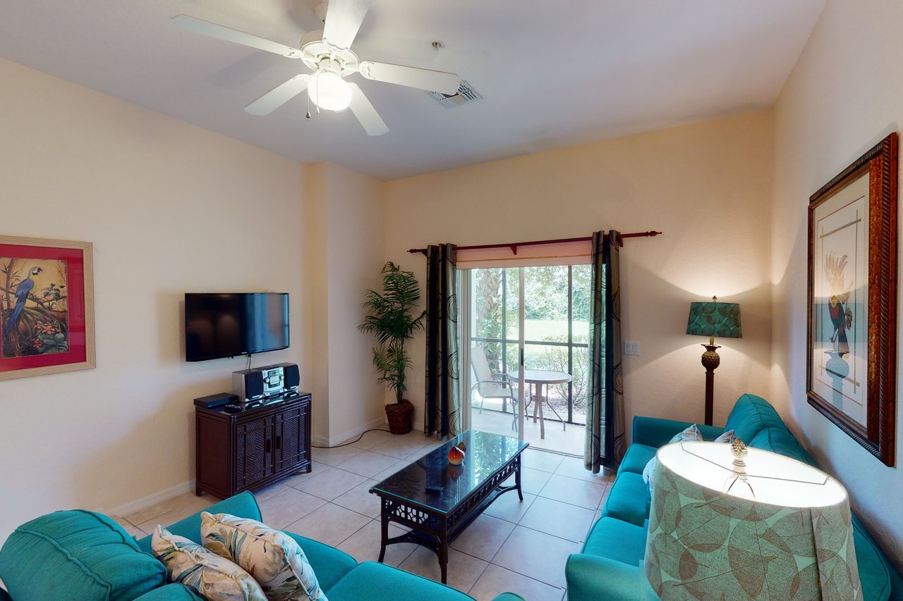 Boasting more than 1,200 square feet of space, the 3-bedroom Abacos villas at Bahama Bay Resort & Spa are ideal for family vacations or group getaways. Comfortable queen-sized beds are standard in the master bedroom and first guest bedroom, while the second guest bedroom features two twin beds. Additional sleeping space is available via a sleeper-sofa that opens up into a queen-sized bed in the living room. The Abacos villas feature two full bathrooms. Enjoy meals in the fully-equipped kitchen which includes all major appliances such as a refrigerator, oven, stove and microwave, and also includes cookware, utensils, and glassware. With plenty of room to spread out, guests will love the spacious living room-dining room area and can take in the scenery from a screened balcony with tables and chairs. An in-unit laundry room means guests can wash clothes while watching cable TV in the living room or master bedroom, or while keeping an eye on the little ones in the crib and highchair included in each unit. What's nearby: The Bahama Bay Resort & Spa boasts amenities like shared pools, hot tubs, fitness center, and a sauna. Located on the shores of Old Lake Davenport, you can enjoy the sand beach, view wildlife from the pier, or relax in a hammock. The resort is also conveniently located near Polo Park East Golf Course. Located only 10 miles from Walt Disney World, there are plenty of local dining and shopping options nearby. Disney Springs offers over 100 shops and 60 restaurants along with daily and nightly entertainment. Gatorland has a free-flight aviary, petting zoo, animal shows, zip line, and a new Stompin' Gator Off-Road Adventure. For additional entertainment, Sea World is just 16 miles away, Universal Studios is 22 miles and for the younger guests, Legoland Florida is 23 miles away from the resort. The Tradewinds Restaurant and Bar, located within the resort, is located poolside on the shore of Lake Davenport. With both indoor and outdoor seating, as well as a bar with lake views, guests can enjoy ice cold drinks, signature burgers and fries, and more! The Market Place, located in the main Clubhouse, offers a wide selection of items from sundries and necessities to souvenirs, apparel, gifts, drinks, snacks, ice cream, and accessories. Things to know: Free WiFi Full Kitchen Please note: All shared amenities are open and operating under limited capacity and new operating hours. Specific information will be provided after booking. Outdoor parking is available at no charge. Motorcycles are permitted but may not remain on a trailer. Trailers of any kind, RVs, and jet skis are not allowed. Commercial or logo-marked vehicles are also prohibited unless they are actively providing service or making a delivery.