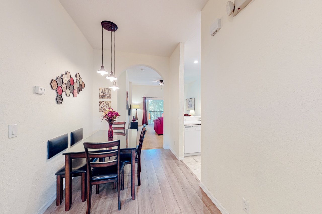 Boasting more than 1,200 square feet of space, the 3-bedroom Abacos villas at Bahama Bay Resort & Spa are ideal for family vacations or group getaways. Comfortable queen-sized beds are standard in the master bedroom and first guest bedroom, while the second guest bedroom features two twin beds. Additional sleeping space is available via a sleeper-sofa that opens up into a queen-sized bed in the living room. The Abacos villas feature two full bathrooms. Enjoy meals in the fully-equipped kitchen which includes all major appliances such as a refrigerator, oven, stove and microwave, and also includes cookware, utensils, and glassware. With plenty of room to spread out, guests will love the spacious living room-dining room area and can take in the scenery from a screened balcony with tables and chairs. An in-unit laundry room means guests can wash clothes while watching cable TV in the living room or master bedroom, or while keeping an eye on the little ones in the crib and highchair included in each unit. What's nearby: The Bahama Bay Resort & Spa boasts amenities like shared pools, hot tubs, fitness center, and a sauna. Located on the shores of Old Lake Davenport, you can enjoy the sand beach, view wildlife from the pier, or relax in a hammock. The resort is also conveniently located near Polo Park East Golf Course. Located only 10 miles from Walt Disney World, there are plenty of local dining and shopping options nearby. Disney Springs offers over 100 shops and 60 restaurants along with daily and nightly entertainment. Gatorland has a free-flight aviary, petting zoo, animal shows, zip line, and a new Stompin' Gator Off-Road Adventure. For additional entertainment, Sea World is just 16 miles away, Universal Studios is 22 miles and for the younger guests, Legoland Florida is 23 miles away from the resort. The Tradewinds Restaurant and Bar, located within the resort, is located poolside on the shore of Lake Davenport. With both indoor and outdoor seating, as well as a bar with lake views, guests can enjoy ice cold drinks, signature burgers and fries, and more! The Market Place, located in the main Clubhouse, offers a wide selection of items from sundries and necessities to souvenirs, apparel, gifts, drinks, snacks, ice cream, and accessories. Things to know: Free WiFi Full Kitchen Please note: All shared amenities are open and operating under limited capacity and new operating hours. Specific information will be provided after booking. Outdoor parking is available at no charge. Motorcycles are permitted but may not remain on a trailer. Trailers of any kind, RVs, and jet skis are not allowed. Commercial or logo-marked vehicles are also prohibited unless they are actively providing service or making a delivery.