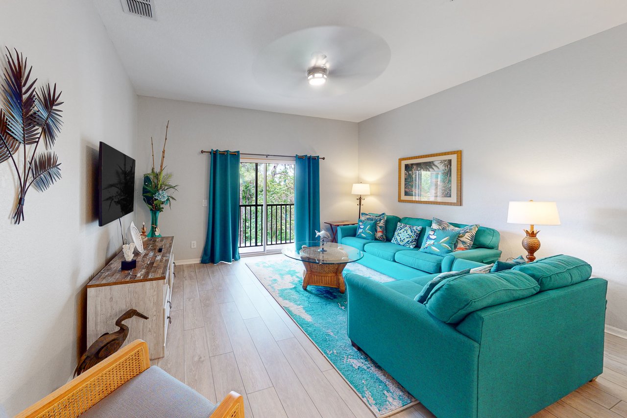 The most spacious of all our properties, the Grand Bahama villas offer more than 1,700 square feet of living area, perfect for larger families looking for accommodation near the Magic Kingdom. This villa boasts a king-sized bed in the bedroom, along with a queen-sized bed in the first guest bedroom and two twin beds in the second guest bedroom. There is also a queen-sized sofabed in the living area. Each unit includes a highchair and portable play yard, for families travelling with infants. The Gran Bahama villas also feature two full bathrooms - with the primary bath featuring dual sinks and a separate tub and shower. With a fully equipped kitchen and in-unit laundry room, the Grand Bahama Villa has all the conveniences of home combined with all the amenities of a resort. So whether you start your day off with a coffee on the screened-in balcony of your villa, a swim in one of Bahama Bay's four pools, or a walk around the beautifully maintained grounds...Bahama Bay is an ideal location for your next Orlando vacation.