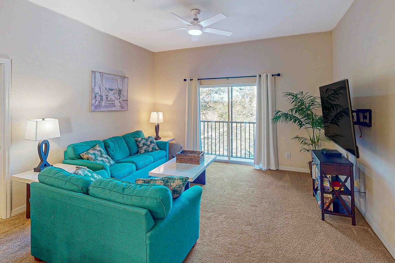 The most spacious of all our properties, the Gran Bahama villas offer more than 1,700 square feet of living area, perfect for larger families looking for accommodation near the Magic Kingdom. This villa boasts a king-sized bed in the master bedroom, along with a queen-sized bed in the first guest bedroom and two twin beds in the second guest bedroom. There is also a queen-sized sofabed in the living area. Each unit includes a highchair and portable play yard, for families travelling with infants. The Gran Bahama villas also feature two full bathrooms - with the master bath featuring dual sinks and a separate tub and shower. With a fully equipped kitchen, and in-unit laundry room, the Gran Bahama Villa has all the conveniences of home combined with all the amenities of a resort. So whether you start your day off with a coffee on the screened-in balcony of your villa, a swim in one of Bahama Bay's four pools, or a walk around the beautifully maintained grounds...Bahama Bay is an ideal location for your next Orlando vacation. What's nearby: The Bahama Bay Resort & Spa boasts amenities like shared pools, hot tubs, fitness center, and a sauna. Located on the shores of Old Lake Davenport, you can enjoy the sand beach, view wildlife from the pier, or relax in a hammock. The resort is also conveniently located near Polo Park East Golf Course. Located only 10 miles from Walt Disney World, there are plenty of local dining and shopping options nearby. Disney Springs offers over 100 shops and 60 restaurants along with daily and nightly entertainment. Gatorland has a free-flight aviary, petting zoo, animal shows, zip line, and a new Stompin' Gator Off-Road Adventure. For additional entertainment, Sea World is just 16 miles away, Universal Studios is 22 miles and for the younger guests, Legoland Florida is 23 miles away from the resort. The Tradewinds Restaurant and Bar, located within the resort, is located poolside on the shore of Lake Davenport. With both indoor and outdoor seating, as well as a bar with lake views, guests can enjoy ice cold drinks, signature burgers and fries, and more! The Market Place, located in the main Clubhouse, offers a wide selection of items from sundries and necessities to souvenirs, apparel, gifts, drinks, snacks, ice cream, and accessories. Things to know: Free WiFi Full Kitchen Please note: All shared amenities are open and operating under limited capacity and new operating hours. Specific information will be provided after booking. Outdoor parking is available at no charge. Motorcycles are permitted but may not remain on a trailer. Trailers of any kind, RVs, and jet skis are not allowed. Commercial or logo-marked vehicles are also prohibited unless they are actively providing service or making a delivery.