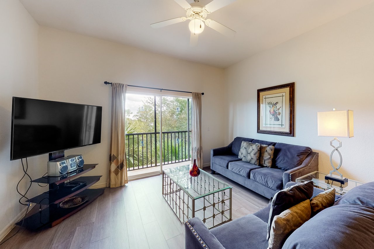 The most spacious of all our properties, the Gran Bahama condos offer more than 1,700 square feet of living area, perfect for larger families looking for accommodation near the Magic Kingdom. Take in the view of Lake Davenport and a local pond from the large private patio. This condo boasts a king-sized bed in the master bedroom, along with a queen-sized bed in the first guest bedroom and two twin beds in the second guest bedroom. There is also a queen-sized sofabed in the living area. Each unit includes a highchair and portable play yard, for families travelling with infants. The Gran Bahama condos also feature two full bathrooms - with the master bath featuring dual sinks and a separate tub and shower. With a fully equipped kitchen, and in-unit laundry room, the Gran Bahama Villa has all the conveniences of home combined with all the amenities of a resort. So whether you start your day off with a coffee on the screened-in balcony of your condo, a swim in one of Bahama Bay's four pools, or a walk around the beautifully maintained grounds...Bahama Bay is an ideal location for your next Orlando vacation.