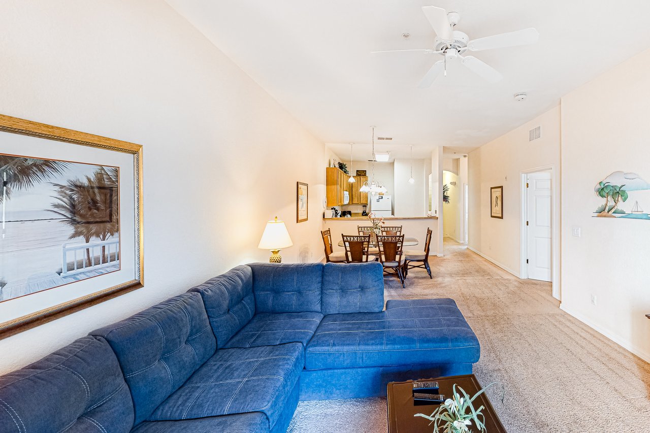 Blending comfort and value, the 2-bedroom San Salvador provides 1,116 square feet of space and enticing extras such as an in-unit laundry room, a private screened balcony and vaulted ceilings. The San Salvador includes a queen-sized bed in the master bedroom, two twin beds in the guest bedroom, and a sofa in the living room that opens into a queen-sized bed. Perfect for vacationers who have children, this villa includes a crib and a highchair, and has two full bathrooms. The San Salvador's large and fully-equipped kitchen has all the major appliances and also includes crockery, cookware, utensils and glassware so you can stay in and have family meals in the dining area. Two large televisions with included cable channels mean different groups can stretch out in the spacious living area and in the master bedroom to enjoy different programming at the same time.