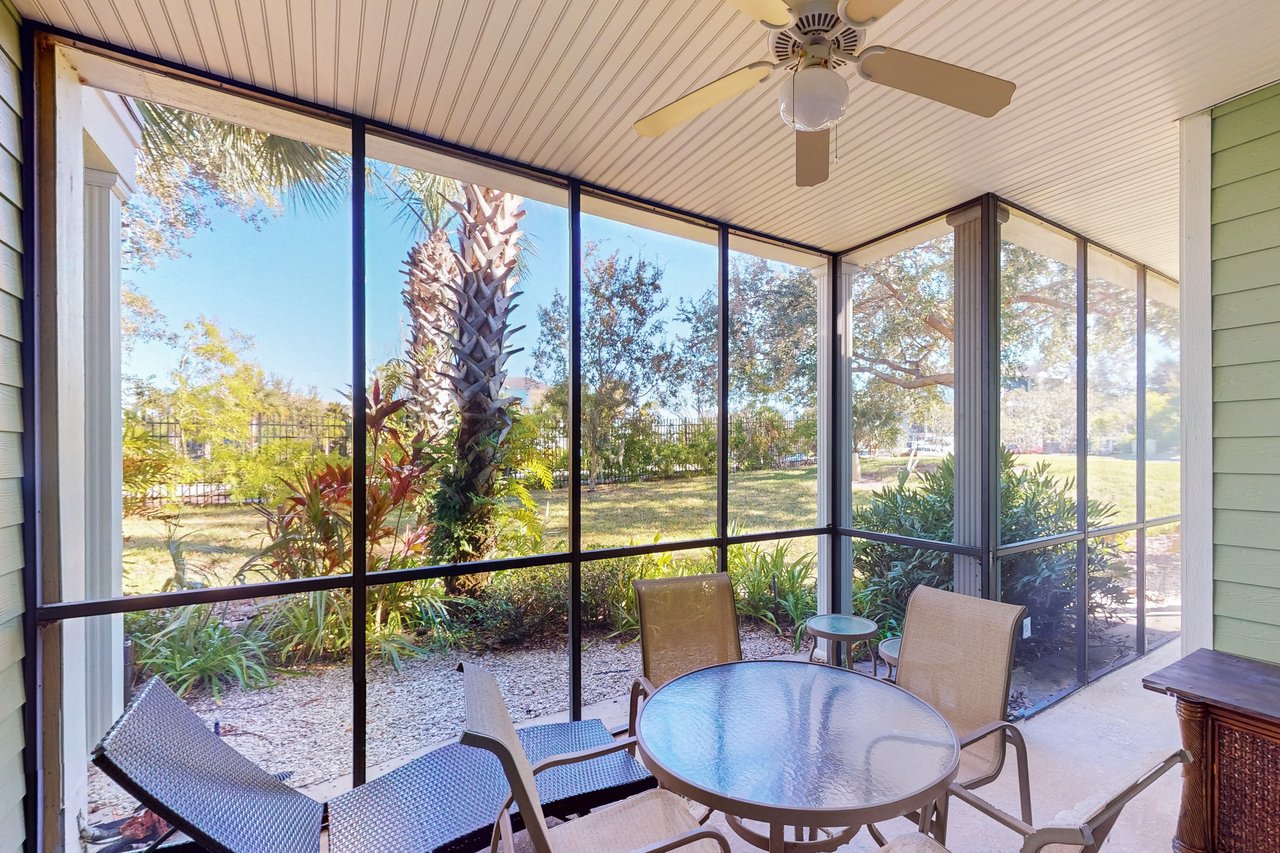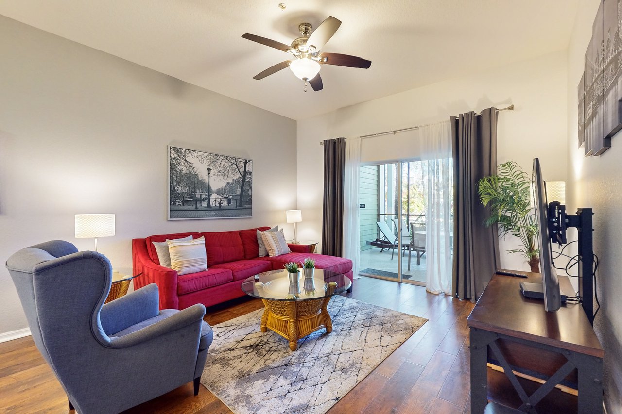 The Andros is our plus-sized 2-bedroom villa boasting nearly 1,400 square feet of livable space and amazing architectural details like vaulted ceilings throughout. The Andros includes a king-sized bed in the master bedroom, two twin beds in the guest bedroom and a sofa in the living room that opens into a queen-sized bed. Available with laminate flooring or full carpet throughout, our Andros villa is perfect for vacationers who have children. The Andros has a crib, a highchair, and two full bathrooms - the master bath has dual sinks, separate showers, and a tub. It also features a large and fully-equipped kitchen which has all major appliances and includes crockery, cookware, utensils, and glassware so you can stay in and have family meals in the dining area. Enjoy coffee, drinks and the views from one of your two screened balconies. Or, stretch out in the spacious living area and enjoy cable TV while washing clothes in the in-unit laundry room. What's nearby: The Bahama Bay Resort & Spa boasts amenities like shared pools, hot tubs, fitness center, and a sauna. Located on the shores of Old Lake Davenport, you can enjoy the sand beach, view wildlife from the pier, or relax in a hammock. The resort is also conveniently located near Polo Park East Golf Course. Located only 10 miles from Walt Disney World, there are plenty of local dining and shopping options nearby. Disney Springs offers over 100 shops and 60 restaurants along with daily and nightly entertainment. Gatorland has a free-flight aviary, petting zoo, animal shows, zip line, and a new Stompin' Gator Off-Road Adventure. For additional entertainment, Sea World is just 16 miles away, Universal Studios is 22 miles and for the younger guests, Legoland Florida is 23 miles away from the resort. The Tradewinds Restaurant and Bar, located within the resort, is located poolside on the shore of Lake Davenport. With both indoor and outdoor seating, as well as a bar with lake views, guests can enjoy ice cold drinks, signature burgers and fries, and more! The Market Place, located in the main Clubhouse, offers a wide selection of items from sundries and necessities to souvenirs, apparel, gifts, drinks, snacks, ice cream, and accessories. Things to know: Free WiFi Full Kitchen Please note: All shared amenities are open and operating under limited capacity and new operating hours. Specific information will be provided after booking. Outdoor parking is available at no charge. Motorcycles are permitted but may not remain on a trailer. Trailers of any kind, RVs, and jet skis are not allowed. Commercial or logo-marked vehicles are also prohibited unless they are actively providing service or making a delivery.