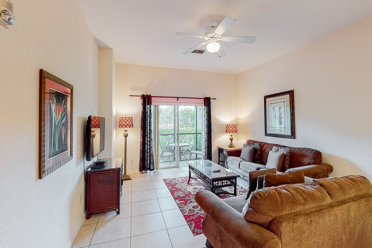 Boasting more than 1,200 square feet of space, the 3-bedroom Abacos villas at Bahama Bay Resort & Spa are ideal for family vacations or group getaways. Comfortable queen-sized beds are standard in the master bedroom and first guest bedroom, while the second guest bedroom features two twin beds. The Abacos villas feature two full bathrooms. Enjoy meals in the fully-equipped kitchen which includes all major appliances such as a refrigerator, oven, stove and microwave, and also includes cookware, utensils, and glassware. With plenty of room to spread out, guests will love the spacious living room-dining room area and can take in the scenery from a screened balcony with tables and chairs. An in-unit laundry room means guests can wash clothes while watching cable TV in the living room or master bedroom, or while keeping an eye on the little ones in the crib and highchair included in each unit. What's nearby: The Bahama Bay Resort & Spa boasts amenities like shared pools, hot tubs, fitness center, and a sauna. Located on the shores of Old Lake Davenport, you can enjoy the sand beach, view wildlife from the pier, or relax in a hammock. The resort is also conveniently located near Polo Park East Golf Course. Located only 10 miles from Walt Disney World, there are plenty of local dining and shopping options nearby. Disney Springs offers over 100 shops and 60 restaurants along with daily and nightly entertainment. Gatorland has a free-flight aviary, petting zoo, animal shows, zip line, and a new Stompin' Gator Off-Road Adventure. For additional entertainment, Sea World is just 16 miles away, Universal Studios is 22 miles and for the younger guests, Legoland Florida is 23 miles away from the resort. The Tradewinds Restaurant and Bar, located within the resort, is located poolside on the shore of Lake Davenport. With both indoor and outdoor seating, as well as a bar with lake views, guests can enjoy ice cold drinks, signature burgers and fries, and more! The Market Place, located in the main Clubhouse, offers a wide selection of items from sundries and necessities to souvenirs, apparel, gifts, drinks, snacks, ice cream, and accessories. Things to know: Free WiFi Full Kitchen Please note: All shared amenities are open and operating under limited capacity and new operating hours. Specific information will be provided after booking. Outdoor parking is available at no charge. Motorcycles are permitted but may not remain on a trailer. Trailers of any kind, RVs, and jet skis are not allowed. Commercial or logo-marked vehicles are also prohibited unless they are actively providing service or making a delivery.