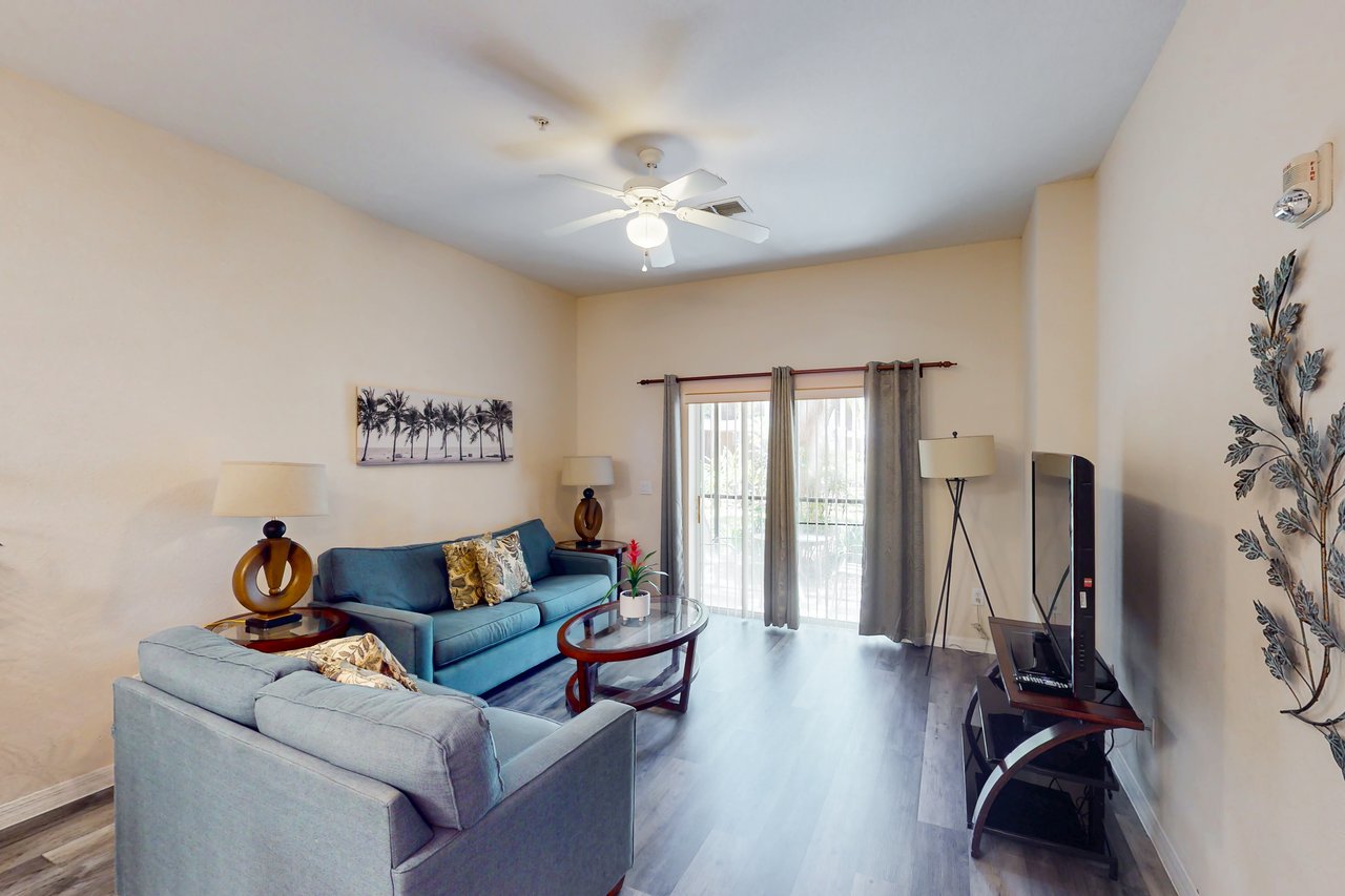 Boasting more than 1,200 square feet of space, this Abacos villa at Bahama Bay Resort & Spa is ideal for family vacations or group getaways. The Bahama Bay Resort & Spa boasts shared pools, hot tubs, a fitness center, and a sauna. Located on the shores of Old Lake Davenport, you can enjoy the sand beach, view wildlife from the pier, or relax in a hammock. The Tradewinds Restaurant and Bar, located within the resort, is poolside on Lake Davenport's shore. With indoor and outdoor seating and a bar with lake views, guests can enjoy ice-cold drinks, signature burgers, and fries. The Market Place in the main Clubhouse offers a wide selection of items, from sundries and necessities to souvenirs, apparel, gifts, drinks, snacks, ice cream, and accessories. The resort is also conveniently located near Polo Park East Golf Course. Located only 10 miles from Walt Disney World, plenty of local dining and shopping options are nearby. Disney Springs offers over 100 shops and 60 restaurants, along with daily and nightly entertainment. Gatorland has a free-flight aviary, petting zoo, animal shows, zip line, and a new Stompin' Gator Off-Road Adventure. For additional entertainment, SeaWorld is just 16 miles away, Universal Studios is 22 miles away, and Legoland Florida is 23 miles away from the resort for the younger guests.