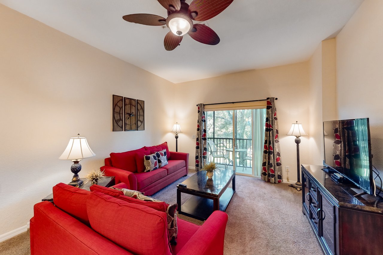 Boasting more than 1,200 square feet of space, the 3-bedroom Abacos villas at Bahama Bay Resort & Spa are ideal for family vacations or group getaways. Comfortable queen-sized beds are standard in the master bedroom and first guest bedroom, while the second guest bedroom features two twin beds. Additional sleeping space is available via a sleeper-sofa that opens up into a queen-sized bed in the living room. The Abacos villas feature two full bathrooms. Enjoy meals in the fully-equipped kitchen which includes all major appliances such as a refrigerator, oven, stove and microwave, and also includes cookware, utensils, and glassware. With plenty of room to spread out, guests will love the spacious living room-dining room area and can take in the scenery from a screened balcony with tables and chairs. An in-unit laundry room means guests can wash clothes while watching cable TV in the living room or master bedroom, or while keeping an eye on the little ones in the crib and highchair included in each unit. What's nearby: The Bahama Bay Resort & Spa boasts amenities like shared pools, hot tubs, fitness center, and a sauna. Located on the shores of Old Lake Davenport, you can enjoy the sand beach, view wildlife from the pier, or relax in a hammock. The resort is also conveniently located near Polo Park East Golf Course. Located only 10 miles from Walt Disney World, there are plenty of local dining and shopping options nearby. Disney Springs offers over 100 shops and 60 restaurants along with daily and nightly entertainment. Gatorland has a free-flight aviary, petting zoo, animal shows, zip line, and a new Stompin' Gator Off-Road Adventure. For additional entertainment, Sea World is just 16 miles away, Universal Studios is 22 miles and for the younger guests, Legoland Florida is 23 miles away from the resort. The Tradewinds Restaurant and Bar, located within the resort, is located poolside on the shore of Lake Davenport. With both indoor and outdoor seating, as well as a bar with lake views, guests can enjoy ice cold drinks, signature burgers and fries, and more! The Market Place, located in the main Clubhouse, offers a wide selection of items from sundries and necessities to souvenirs, apparel, gifts, drinks, snacks, ice cream, and accessories. Things to know: Free WiFi Full Kitchen Please note: All shared amenities are open and operating under limited capacity and new operating hours. Specific information will be provided after booking. Outdoor parking is available at no charge. Motorcycles are permitted but may not remain on a trailer. Trailers of any kind, RVs, and jet skis are not allowed. Commercial or logo-marked vehicles are also prohibited unless they are actively providing service or making a delivery.