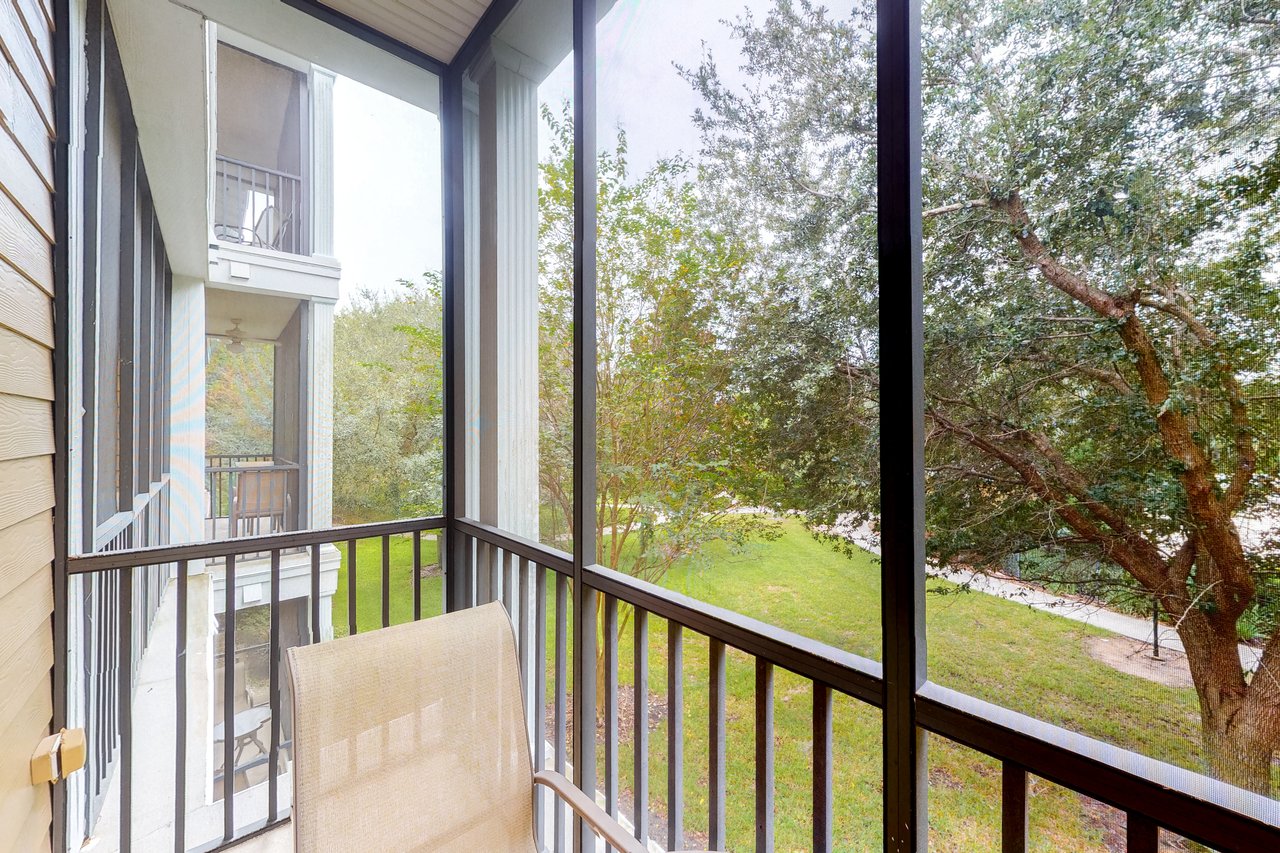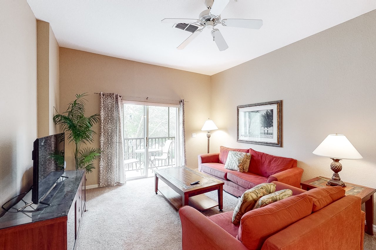 Comfortable queen-sized beds are standard in the main bedroom and first guest bedroom, while the second guest bedroom features two twin beds. Additional sleeping space is available via a sleeper-sofa that opens up into a queen-sized bed in the living room. The Abacos villas feature two full bathrooms. Enjoy meals in the fully-equipped kitchen which includes all major appliances such as a refrigerator, oven, stove, and microwave, and also includes cookware, utensils, and glassware. With plenty of room to spread out, guests will love the spacious living room-dining room area and can take in the scenery from a screened balcony with tables and chairs. An in-unit laundry room means guests can wash clothes while watching cable TV in the living room or main bedroom, or while keeping an eye on the little ones in the crib and highchair included in each unit.