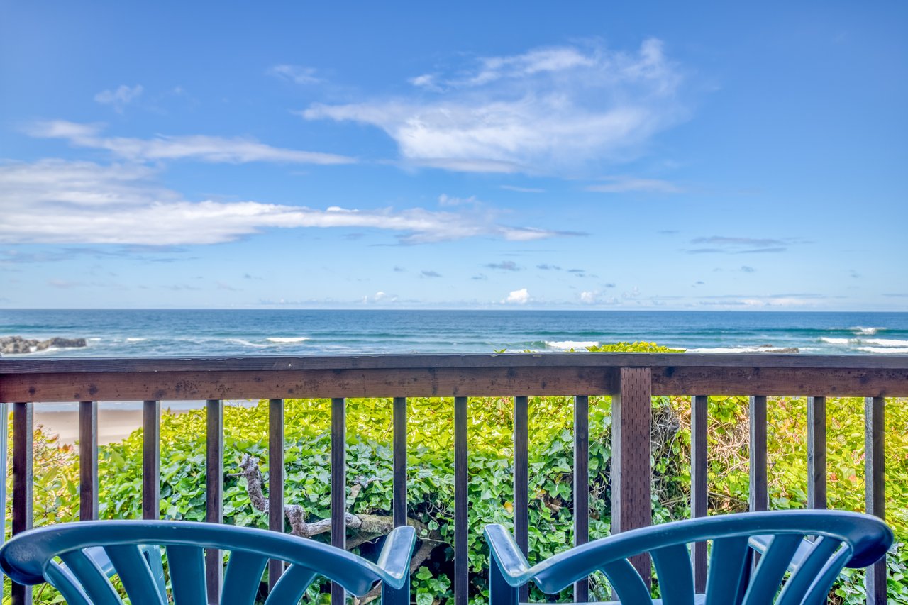 The lower level has a two-car garage and a game room with a ping pong table and plenty of books and games to entertain the kids. On the main level, large windows in the living room and dining room bring sparkling ocean views, a west-facing deck is the perfect spot for enjoying the sunset, and you can cozy up to the gas fireplace at night. Three bedrooms on the main level include two queens and a pair of twin beds. Upstairs, a spacious king suite has stellar ocean views and a luxurious bath with a shower. Brightly appointed with custom tile, skylights, and a breakfast bar in the fully equipped kitchen, Anchor House will delight guests of all ages. Your southern Lincoln City location puts you within easy reach of the Taft District, with its bars, restaurants, bakery, shops, and the Jennifer Sears glassblowing studio. If you don’t find a glass float on your many relaxing beach walks, you can blow your own!
