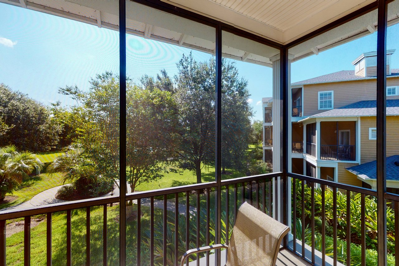 Blending comfort and value, the 2-bedroom San Salvador provides 1,116 square feet of space and enticing extras such as a laundry room, a private screened balcony and vaulted ceilings. The San Salvador includes a queen-sized bed in the master bedroom, two twin beds in the guest bedroom, and a sofa in the living room that opens into a queen-sized bed. Perfect for vacationers who have children, this villa includes a crib and a highchair, and has two full bathrooms. The San Salvador's large and fully-equipped kitchen has all the major appliances and also includes crockery, cookware, utensils and glassware so you can stay in and have family meals in the dining area. Two large televisions with included cable channels mean different groups can stretch out in the spacious living area and in the master bedroom to enjoy different programming at the same time.