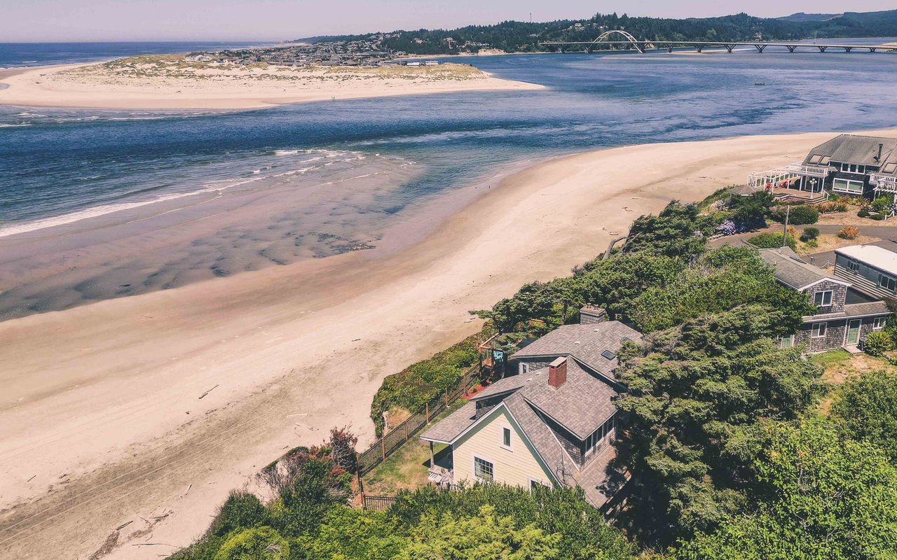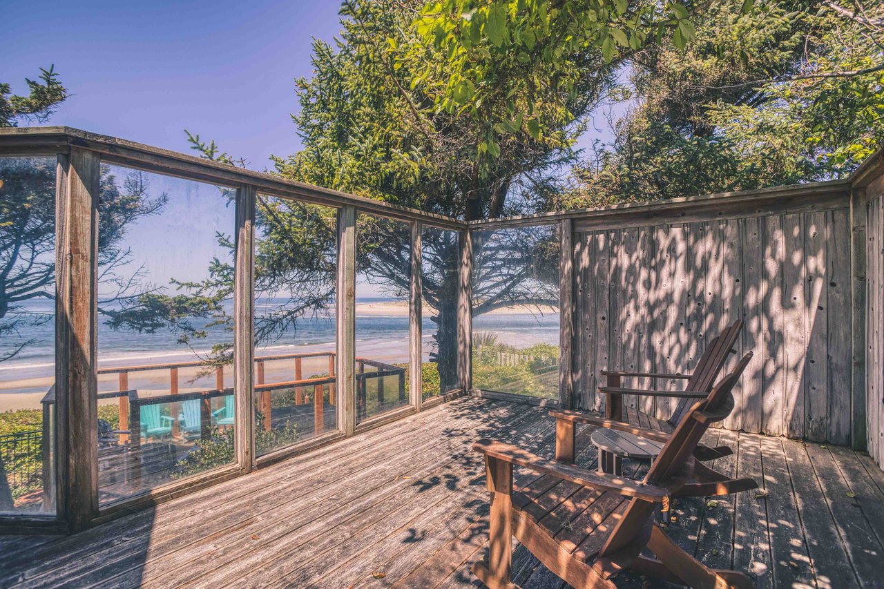Prepare for a cozy and wonderful stay in Historic Dowd House, a historic oceanfront home with two living areas steeped in classic Oregon Coast cottage detail. Perched on a high cliff above the southern side of Alsea Bay, you’ll have sea views from the home and panoramic outdoor views of the south and north sand spits, Alsea Bay and the Pacific. You’ll love the eclectic, old-world details of the cottage, from beamed wood ceilings, antique furnishings and an amazing rock-and-shell-embedded wood-burning fireplace hearth with clever sailing ships on the mantle. Fully equipped kitchen, along with a second living room, making this a great home to share with another family. There’s one ground-level bedroom with a nearby bath, and two upstairs sleeping areas, each with its own staircase. One side has a bath and two bedrooms, a queen and an ocean-view king with a charming twin bed with a window to the sea. The other side is a wood-lined queen suite with a private ocean-view deck. Located down a lane in a quiet residential area, Historic Dowd House is just up the hill from Waldport, walking distance to the Hilltop Cafe-Bistro, and an easy drive to all the fun activities in Newport or Florence, with all the stellar scenery in between.