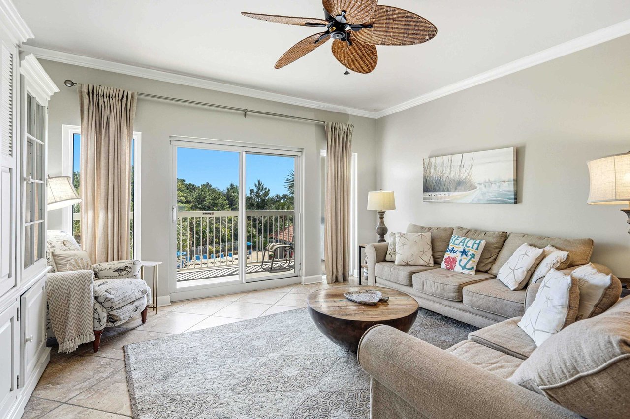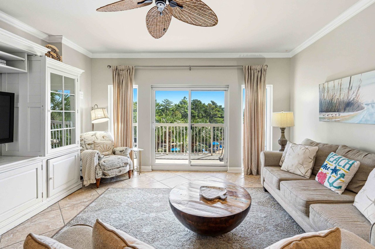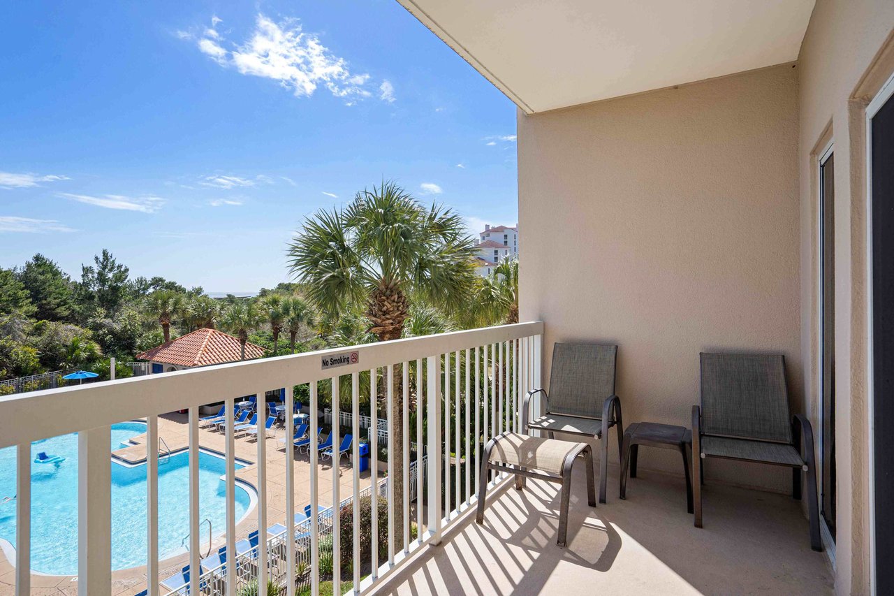 Step out and enjoy easy access to the sugar-white sand beaches of Miramar Beach, just a short walk or quick trip along the resort pathways. Relax on your private balcony overlooking the pool and lush greenery—perfect for morning coffee or evening downtime.
